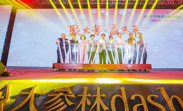 彩虹多多药业集团董事长刘景萍女士与大参林医药集团董事长柯云峰先生、中国医药商业协会执行会长付明仲女士等嘉宾共同开启了“聚大势•赢未来"大参林工商合作峰会的大幕。